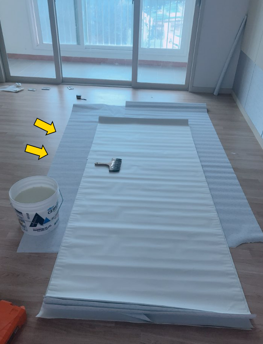 벽지를 붙이기 전에 절대 풀이 말라서는 안됩니다!